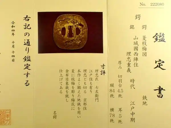 Elegant Craftmanship Tsuba Umetada Shigeyoshi NBTHK Hozon