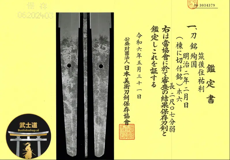 Suketoshi is recorded as a disciple of Yokoyama Kagasuke Sukehisa, working in the Chikugo region, historically connected to the Kurume domain of northern Kyushu. Swordsmiths of this tradition were expected to produce blades capable of withstanding the realities of combat. Their work reflects the disciplined practicality of warriors who valued reliability, cutting efficiency and structural durability above decorative flourish.