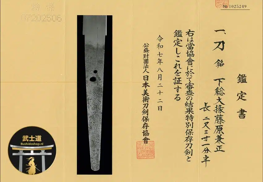 Certification: NBTHK Tokubetsu Hozon – Special Preservation Sword