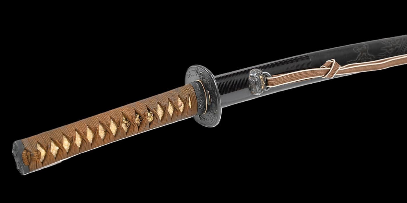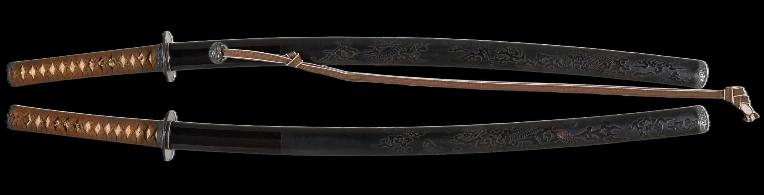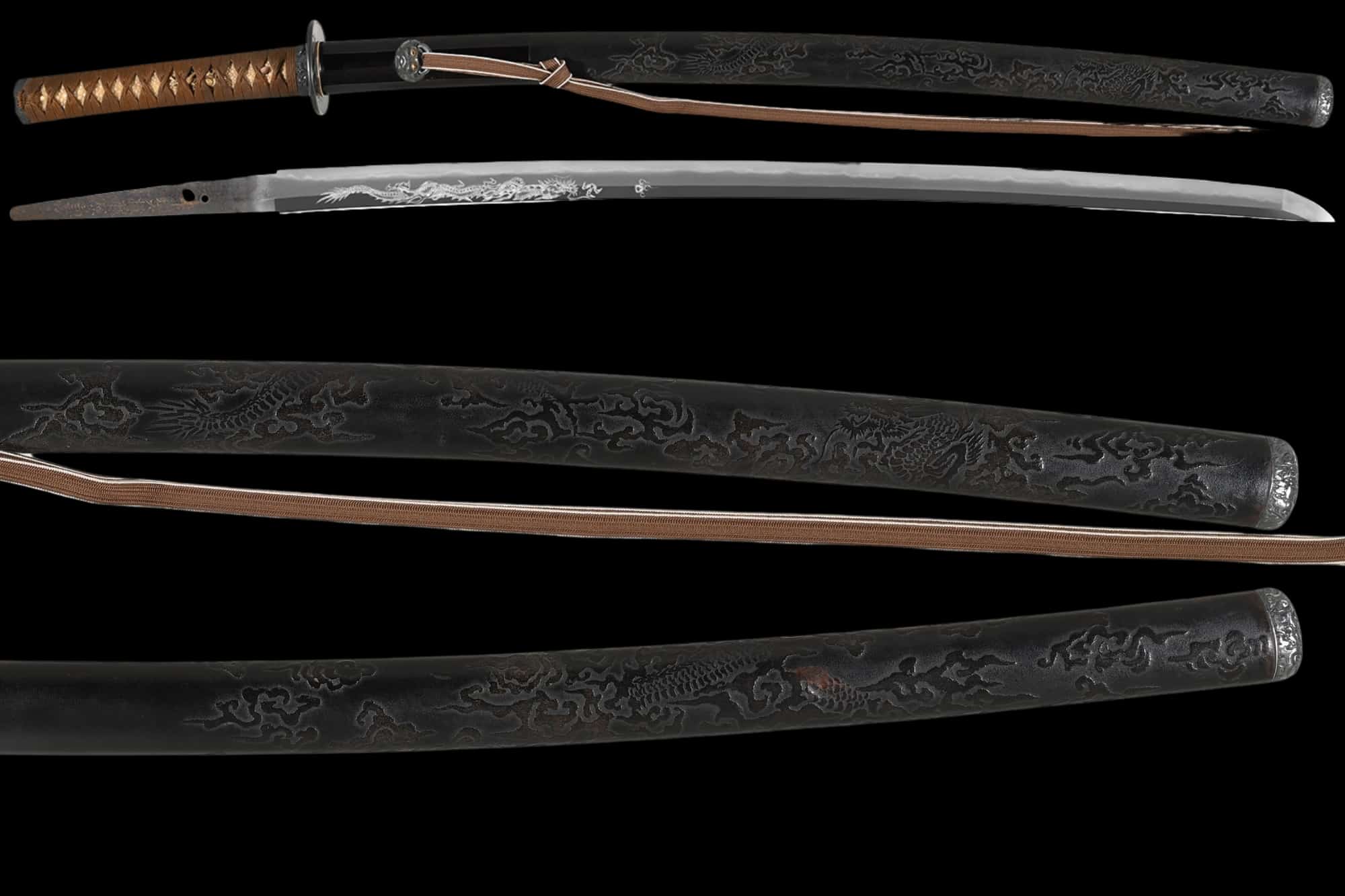 The saya is decorated with an exceptional dragon design, refined, clean, and in perfect harmony with the theme of the entire koshirae. The style and execution make it a true collector’s piece.