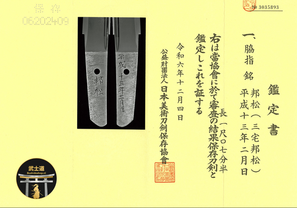 At the nakago, the mei 邦松 (Kunimatsu) is cleanly and confidently cut, accompanied by the date Heisei 13 (2001). The yasurime are orderly, and the overall finish of the tang is consistent with a smith who fully understands not only forging, but also appraisal criteria.