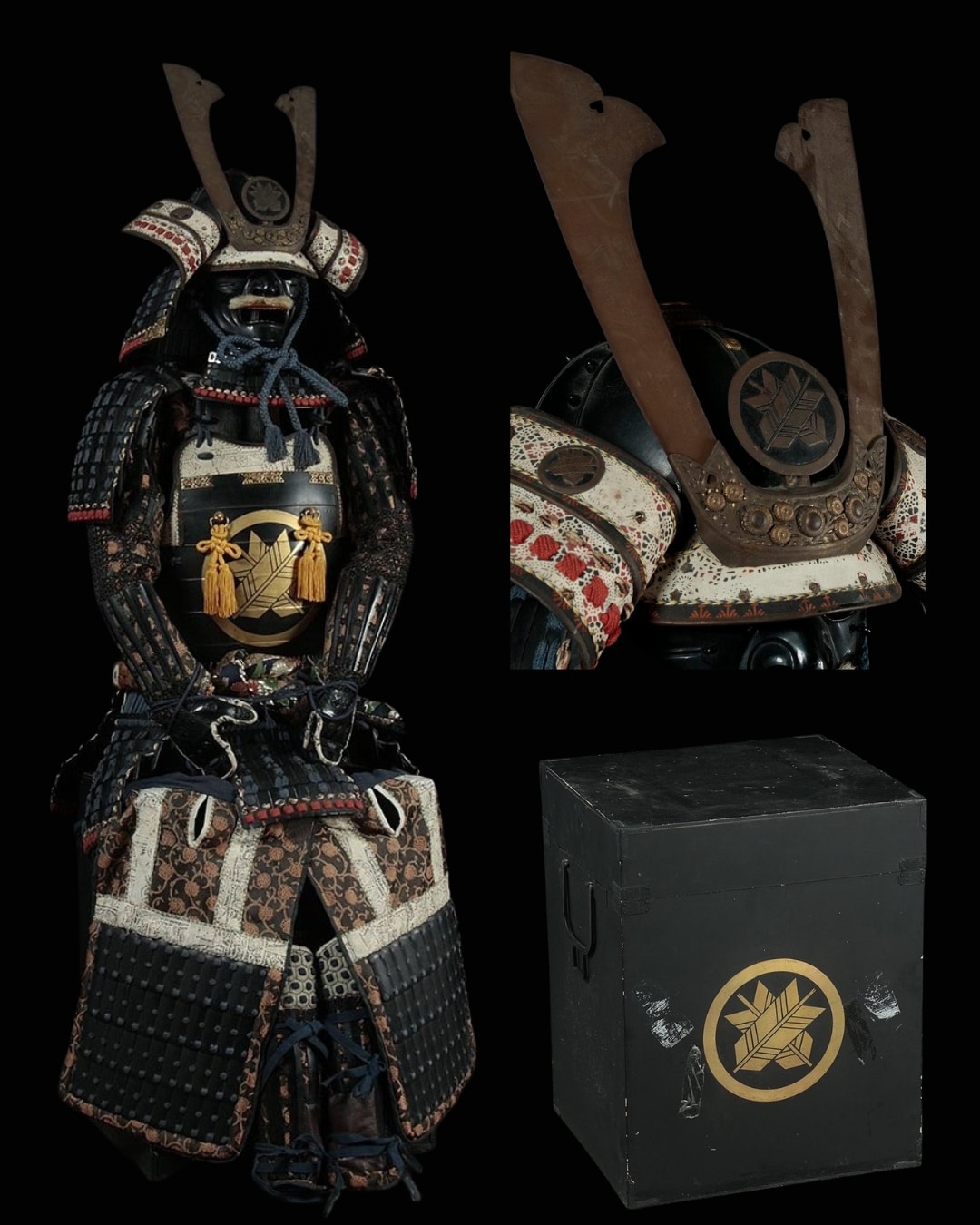 Showa-period armors are increasingly sought after by collectors due to their balance of affordability, authenticity, and traditional construction. This suit is particularly attractive because of the large gold clan mon and the overall completeness and condition. It is an ideal addition for collectors of samurai armor, Japanese antiques, nihonto, gunto, and military history.